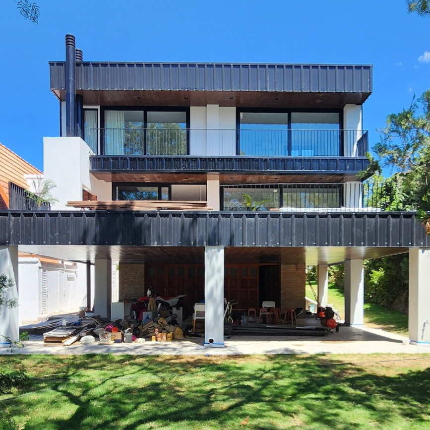 Ampliación vivienda unifamiliar en estructura metálica, losa, streel deck y cerramiento de chapa prepintada. Zingueria de terminación.