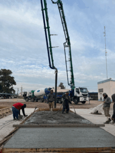 Estructura metálica y pisos de hormigón fibrado con terminación alisado mecánico