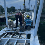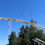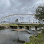 Puente Peatonal en la ciudad de Río Tercero. Obra de infraestructura urbana. Fundada con grupo de pilotes y estructura metálica pre-fabricada con vigas de alma llena.